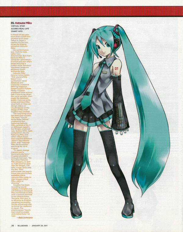 日本のみならず世界中でその活動が注目されている初音ミクは、2011年1月に、テイラー・スウィフト、アッシャー、シャーデ—などと並び、米ビルボード誌が選ぶ2011年注目の音楽ニュース35位に選ばれている。同年5月には、アメリカにてトヨタ・カローラ2011年モデルのキャンペーンにも起用、7月には、米ロサンゼルスのノキア・シアターにて、【MIKUNOPOLIS in LOS ANGELES】を開催、熱狂的な海外ファン6000人を前に23曲をパフォーマンスした。公演は、2012年3月に社団法人デジタルメディア協会「デジタル・コンテンツ・オブ・ジ・イヤー'11/第17回AMDアワード」で、大賞/総務大臣賞を受賞している。