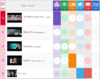 ▲8月14日付けのJAPAN Hot100、トップ5(動画順)
