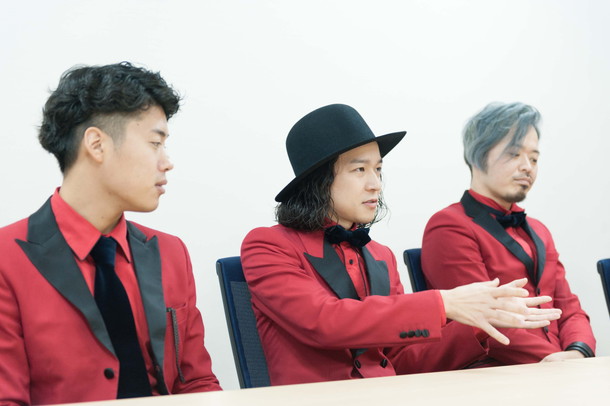 PAKshin:で、僕の前にもうひとりオーディションを受けていて、その人があんまり真剣に音楽やりたい人じゃなかったみたいで、それに対して僕は大学生で時間もあるからいろいろ合わせられるし「全然活動できますよ」と伝えたら「ぜひ入ってほしい」と言われて。 西崎ゴウシ伝説:ただ、僕からしたらオーディションを受けに来てくれたと思っていたから、そのわりには「もし俺が入ってあげたら、俺が作る曲とかも出来るんですか?」ってすごく上からだったので驚いて(笑)。でも「どんな曲ですか?」と聴いたらひとりでピアノを弾き出して、それがめっちゃ格好良くて! それが「入って!」という決定打になったんですけど。 HIDEYAN:それ、一歩間違えたら採用されてないよな。人として(笑)。--まぁいろんな勘違いはあったけれどもお互いに「一緒にやりたい」となった訳ですね。辻本さんはどんな経緯で加入されたんですか?
