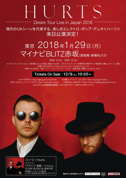 まさに待望の来日公演だと言えるだろう。80年代のシンセ・ポップ/ロックから多大な影響を体現しつつ、2010年に鮮烈なデビューを飾った英国出身のエレポップ・デュオ、ハーツ。以来、その美意識を貫き続ける二人組が、1月29日、マイナビBLITZ赤坂にて一夜限りの来日公演を行う。単独公演としては7年ぶりという貴重なライブだ。