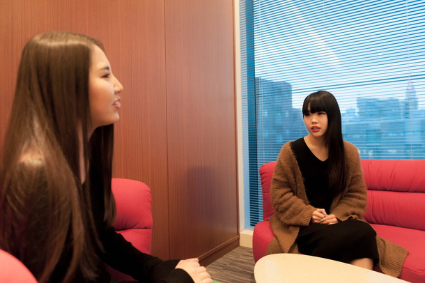 阿部真央:本当にそう思いました! それでMVの撮影のときにアルバムを頂いて聴かせてもらったんですけど、この声がこの可愛らしい女の子から出ているのかと驚きました。でも監督さんからは「すごくエキセントリックな女の子だから」と最初に聞いていて、実際にアイナちゃんと撮影で会っているときは「全然そんな感じしないけどなぁ」と思っていたんですけど、いざ歌を聴いたらめちゃめちゃ格好良くて! ひとりハスキーで圧倒的な歌唱力だったから驚いちゃって、そのギャップにもヤラれちゃって。「こんなに格好良い歌声を持っている女の子が、私の曲をオーディションのときに歌ってくれていたなんて……」と思いましたし、本当に光栄でした。 アイナ・ジ・エンド:ありがとうございます。私、レコーディングとかで「好きなように歌って」と言われるときは、阿部真央さんの歌い方とか歌い回し、自分の中にある阿部真央さんモードで歌ったりするんですけど、そしたらそれを採用されることが結構多かったりするんで、それを阿部真央さん自身に聴いて頂いているというのは不思議な感じがします(笑)。 阿部真央:いやいや、本当に嬉しいです。本当に素晴らしい声です。--そもそも阿部真央というアーティストに憧れたきっかけは何だったんでしょう?
