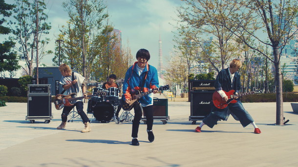 江口雄也:タイムラプスですね。演奏しているシーンからストップモーションになって…っていう撮影に挑戦したんですけど、色んな場所で長い時間をかけてやったので、そのシーンはどんな感じになるのかなって。はじめに説明は受けてるんですけど、それと自分たちの演奏シーンが加わったことによって、どういう化学反応が生まれるのか楽しみですね。 辻村勇太:ほんと僕らがよく観ていた、憧れていたMVってそういう王道的なものだったし、やっぱり憧れが強かったのは、僕らの周りをカメラさんがレール移動しながらの撮影で、そこで外を向いて演奏しているっていうのが格好いいなって! 田邊駿一:L'Arc~en~Cielさんの「Honey」みたいなね!一同:それだ!(笑)