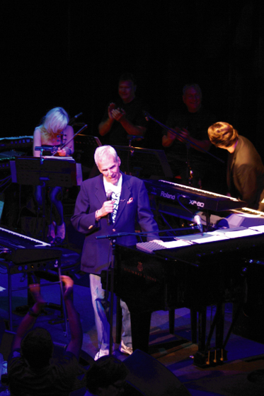 ステージ中央にはバカラックとグランドピアノ。それを取り囲むように、女性ヴァイオリニスト、2人のホーンとキーボードにドラムとベース、男性1人、女性2人のヴォーカリストという総勢11人で繰り広げるゴージャスなショーは、3人が交互にワンコーラスずつ代表曲を歌い継ぎながらテンポ良く進んでいった。とりわけ前半は「小さな願い」(アレサ・フランクリン)、「恋よさようなら」「サンホセへの道」(共にディオンヌ・ワーウィック)「遙かなる影」(カーペンターズ)といったハル・デイヴィッド時代のヒット名曲をメドレーで演奏し、一気にバカラック・ワールドに引き込んでしまう構成が鮮やかだった。中でも感心したのはバカラック・サウンドの要であるオーケストラ・パートを、サンプリング・キーボードによるストリングスを交えながら過不足なくスマートに再現していたのが聴きものだった。