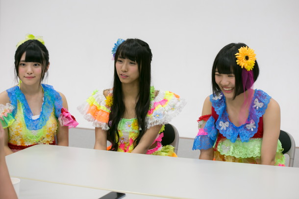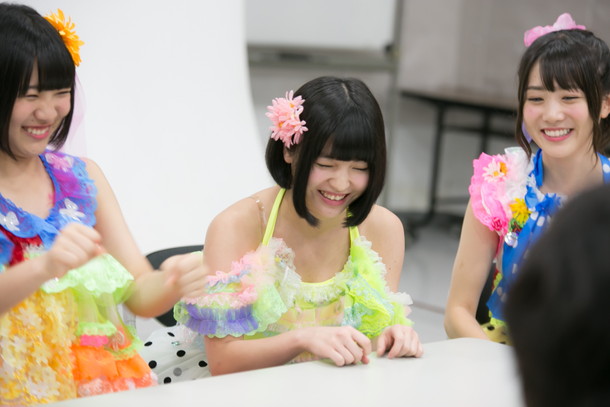 的場華鈴:最近、同じぐらいに結成したグループがどんどん解散していて、だから「そういう時期なのかなぁ」と思うんですけど、虹コンは続いていく。そこは安心して見ていてもらいたいなと思います。どうしてもまわりにそういうことが増えるとヒヤヒヤするじゃないですか。皆さんに虹コンがどういう風に見えているか、私たちからは分からない部分もたくさんあるんですけど、もしかしたら「怖いなぁ」と思っている人もいるかもしれない。だけど、私たちには続けていきたい意思がしっかりあるので「虹コンは続いていくよ」ということはすごく主張していきたいなと思っています。