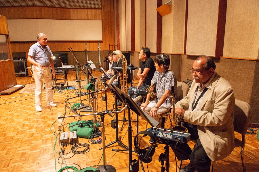 そして3曲目は「Friendship」。向谷 実の指揮でレコーディングが進行し、タイトなアンサンブルがビシビシ決まる。ドンも「カンゼンダ」と日本語でご機嫌だ。ここで本日は終了。