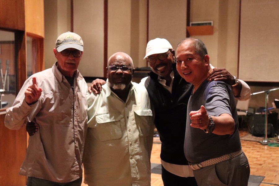 ユナイテッド・スタジオに、ドン・グルーシン(key)、ハーヴィー・メイソン(ds)、エイブラハム・ラボリエル・シニア(b)、ポール・ジャクソン・ジュニア(g)、アーニー・ワッツ(sax)というグレイトなミュージシャンたちが集まってきた。みんな古くからの付き合いだけあって、和気あいあいだ。ただ、近年のレコーディングではこういったメンバーが一堂に会して録音することは珍しくなってきているので、まるで同窓会のように、みんなで楽しそうに盛り上がっている。