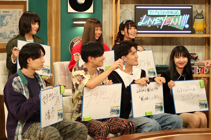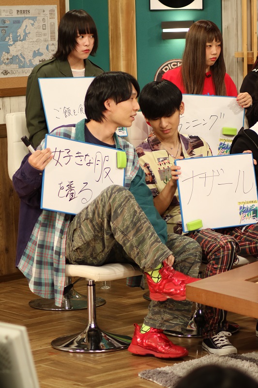 番組後半は、<STARTERS MATCH>参加アーティストをもっと深く掘り下げるべく、題して『ニューカマーたちの魅力を探れ! 質問責めするから色々教えて欲し~の♥』のコーナーへ。次々と繰り出される質問に、アーティスト達がフリップボードで回答していく。