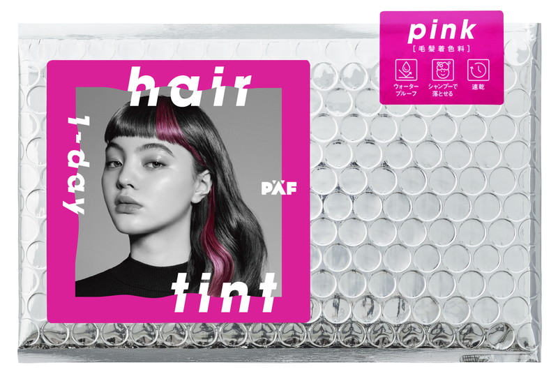 そんな「#love_xxx」のMVでは、みんなでオシャレをしてパーティへ出かける様子が描かれた。冒頭にはまず『PAF 1-day hair tint』のパッケージが登場。これが従来のヘアカラー剤とは一線を画しており、シルバーをベースにワンカラーを際立たせたスタイリッシュなプロダクト・デザインは、アート作品のように見えるほど。ヴィヴィッドなMVの世界観へと瞬時に引き込む役割を果たしている。