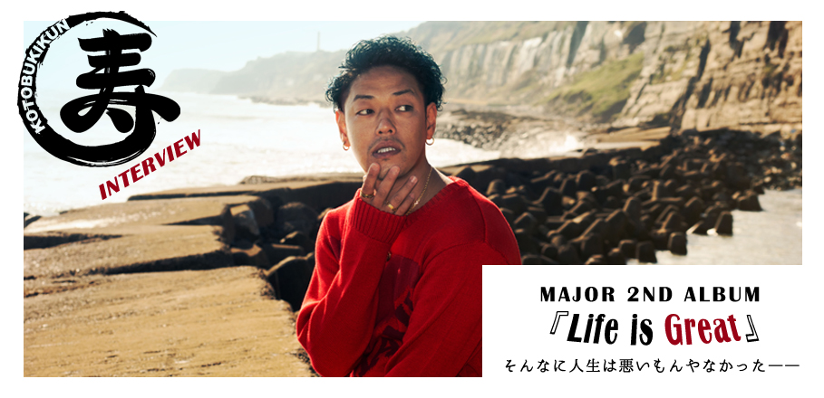 ジャパニーズレゲエムーヴメントを再び巻き起こす使命感も抱きながら、メジャーシーンで大どんでん返しストーリーを繰り広げんとする期待の星、寿君(コトブキクン)。日本中の老若男女すべてをリスナーとして捉えるべく邁進する中、その人生のすべてを詰め込んだメジャーセカンドアルバム『Life is Great』を完成させた。楽しんでいる奴の象徴!キャプテンとして音楽を続けてきた男が初めて弱さも曝け出し、それも含めて「そんなに人生は悪いもんやなかった」と伝えたかった理由。そして、ここからどんな風にメジャーシーンで戦っていこうとしているのか。