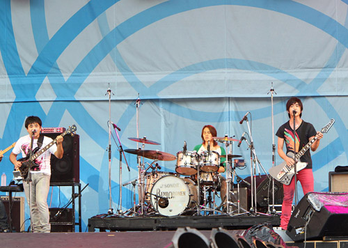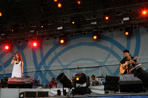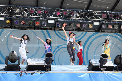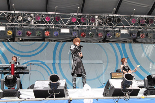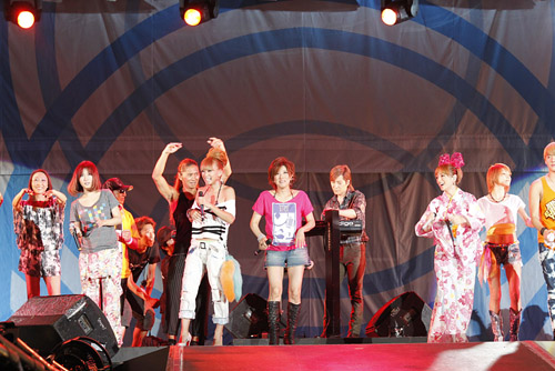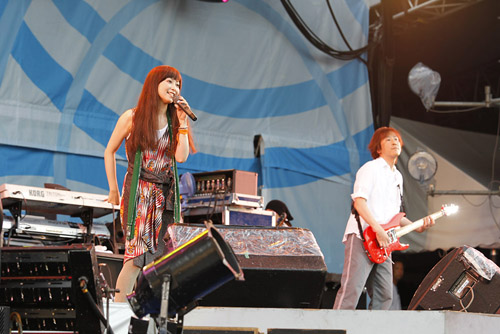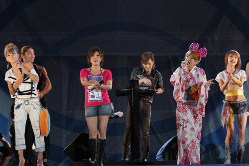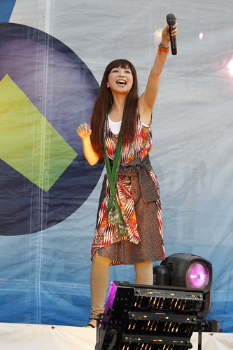 キティちゃんによるDJという前代未聞のステージを微笑ましい表情で見つめるオーディエンス。そして彼女が「みんな、DJ Hello KIttyを応援してね、バイバイ」とステージを去ると、今度はファッション業界ナンバーワンの実力を誇る平子理沙が、元気いっぱいのバンドを従えての登場。CDデビューしたばかりとは思えないボーカル、数々のビッグステージを制してきたトップモデルの存在感でもって、老若男女の視線を釘付けに。