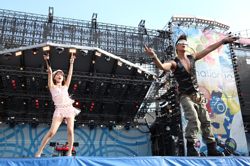 CHIHARUとETSUは激しいポールダンス、SAMも空中を活用した鮮やかなダンスを繰り広げ、更にはスモークを客席に向かって放出。DJ KOOが「2010年版のTRF」と言い、TERIYAKI BOYZのWISEが参加したバージョンの『BOY MEETS GIRL-Reborn-』を披露すると、会場はひとつになって大はしゃぎ。YU-KIが「季節外れの曲ではあるんですけど」と『寒い夜だから・・・』を歌い出せば、みんなも一緒になって真夏の夜空に切ない冬の歌を熱唱する。そして満を持しての『EZ DO DANCE』では「ゴー!ゴー!ゴー!ゴー!ゴー!」とKOOが5万人のテンションを上げていき、サビでは「EZ DO DANCE!」と聞こえる度に誰もが「Fu!」と歌いながらジャンプ。そしてトドメはもちろんこの曲『survival dAnce~no no cry more~』!史上最強のダンスチューンは今年も【a-nation】の大きなハイライトとなった。