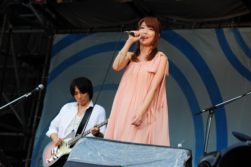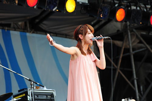 そんなELTのグルーヴをしっかりと受け継ぐように、まずは「空に舞い上がる 大きな羽を心に はるかな大地をあなたと越えてゆけたら」と『Garden』をアカペラで響かせ、シューティングアクトとしてはこの2日間で最も大きな歓声を浴びながら会場をひとつにしていく。続く『Shiny Sky』ではみんなとタオルぶんぶん振り回しつつ、昨年の【a-nation】より明らかにレベルアップしたステージングを展開。その手応えを得てか、彼女は実に良い笑顔を浮かべていた。