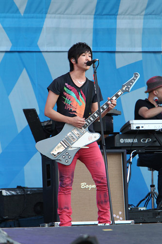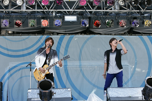 ギターを手に登場した小池徹平とウエンツ瑛士。柔らかくもフレッシュな爽やかボーカルで「スーパークリア!空の下♪」と夏にピッタリのフレーズを笑顔で畳み掛け、会場中の女性の心を鷲づかみ。嬉しそうに飛び跳ねる2人。その後も、5万人の「こんにちは!」を即してウエンツが満足げな表情を浮かべたり、とっておきの大ヒットチューン『僕のキモチ』で大きな歓声を生んだりと、楽しそうにライブを進めていく。そして最後はウエンツのピアノと小池のギターで、最新シングル『24/7~もう一度から』を。切なくも愛情深いラブバラードを真剣な声と表情で響かせた。