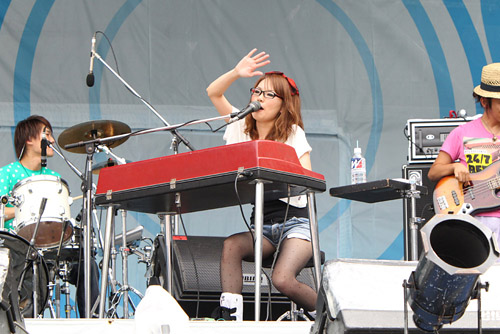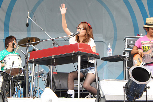 「皆さん、お元気ですか?」めっちゃ元気なhiroko(vo)のコールに勢いよく立ち上がるオーディエンス。「Say Ho!」のコール&レスポンスで会場をひとつにしたところで大ヒットナンバー『気分上々↑↑』。つかみは完璧である。その後も『す・か・ん・く』でみんなのタオルをぐるぐる回させたり、「どうも、寄せてあげてきました」といつもの挨拶で笑いを誘ったり、ラブソング『Love Letter』にじっくり聴き入れさせたりと、ポップでキャッチーなエンターテイナーとしての実力をしっかりと証明。「撤収しまーす!」最後の最後までミヒマル節を突き通すhirokoであった。
