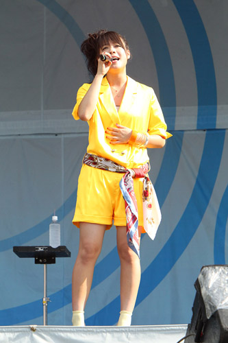 まるで向日葵のように鮮やかな衣装で登場した彼女。歌手としてのキャリアは非常に短いにも関わらず、真っ直ぐで綺麗な『サクラサク』を響かせていく。太陽の光を目一杯浴びて、満面の笑みで、精一杯の声で。続いては「もしよかったら一緒に手拍子して下さい」と小室哲哉が作曲した『花束』を。臆することなく「きっと何か待っている このあなたがくれた花束と 夢があふれてる そう思える私がいる」と真剣な表情で歌い上げた彼女に、たくさんの拍手と歓声が贈られた。