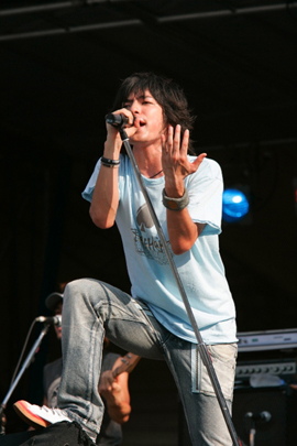 『Love again』がS.E.で流れてくるだけで盛り上がる会場。そしてKEICO、MARC、TKの3人がステージに現れ『FACES PLACES』が流れ出せば、もう何とも言えない感動的な空気が生まれ、今日それまで感じられなかった大きな一体感が。さすがはglobeである。MARCも存在感抜群のラップで強靭な世界をこの会場に生んでいく。そのMARCが強烈な炎と共に「Wanna!」と叫ぶ、異様なテンションの上がりようでオーディエンス歌い叫びまくり。人を高揚させることにかけては天下一品である。「俺たちも10周年!これからも突っ走っていくんでよろしく!」と、MARC。そして曲は新曲『Love goes on!!』へ。新曲なのにみんな歌えちゃってるこのキャッチーさもさすがである。で、ラストは、ようやくTKがギターではなく鍵盤を叩き出し、デカい爆音と共に『Feel Like dance』!これまたさすが、とにかくさすが、野外フェスにおいてもglobeはオーディエンスの心をガッツリ掴んでみせた。