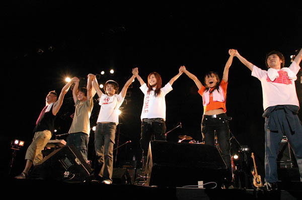 「もう最高やねん!」という彼女の言葉の後、バンドのメンバー紹介を経て、やっぱり最後はこの曲『さくらんぼ』!まずは“愛し合う~♪”というあまりにも有名なフレーズを何度も何度もオーディンスとコール&レスポンス!それを十数回続けた後、会場に集まった全ての人々が声を揃えて“愛し合う 2人 いつの時も・・・♪”と、大合唱&大熱唱!予想以上の大きな盛り上がりをこの曲で見せる会場。男の子も女の子も大塚と一緒になってとことん大はしゃぎ!2004年もあとわずかで終わりを迎えるが、今年この曲以上にライヴで盛り上がれるナンバーは誰にも作れまい。最後はこれでもか!というくらいの満面の笑顔で、全員が“あたし さくらんぼ~!!”と熱唱!いやぁ~本当にすごい力を持った一曲である。