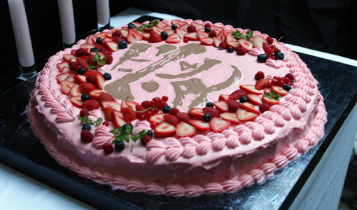 そんな開演間にファンの一人がでかい声で何かをメガホン越しに叫び出す。すると、一人、また一人と、何かのメロディを口ずさみ出す。そして徐々に歌う人が増えていき、そのメロディの輪郭を露わにしたこの曲は、大塚 愛の『Birthday Song』!そんなファンの自発的なサプライズを受けてか、バンドメンバーがバースデーケーキを持ってステージに登場。そしてチャーリーのピアノ伴奏付きで、みんなは再び『Birthday Song』を歌い出す。そこへ照れくさそうに今日の主役、25才の誕生日を迎えた大塚 愛が登場!ローソクの火をひとつずつ消してゆく。「こんばんは!大塚 愛です!ラブ・イズ・ボーン!!」と叫ぶと、なんと!ド頭から『さくらんぼ』が。全員揃って大はしゃぎの大合唱&ハイジャンプで、いきなり去年のバースデーライブのクライマックスが再現される。そして久々にライブで聴く『Strawberry Jam』をすげぇハッピーな空気の中で漂いながら堪能する僕ら。この曲、ここ野音の陽が落ちて夜になっていく刹那によく似合う。「みんな今夜はもっともっと楽しもうね~!」そう彼女が言って聞こえてきたナンバーは、まるで今年の夏をもう一度頭からやり直すかのような開放感を持つ『PEACH』。唸る藤井のギター!踊るオーディエンス!ほんとに真夏のど真ん中みたいに汗だくになる僕ら。そして正しく野音が夜に包まれた瞬間、蜩(ひぐらし)の鳴き声と黄金(こがね)色の光、みんなのハンドクラップが抜群の相性で絡み合った『HEART』と『扇子』の披露。なんなんだ?この浮遊感、気持ち良さは。『扇子』はライブで披露されること自体がサプライズだったりもするわけだが、あれから3年以上の歳月が流れているからこそより分かるこの楽曲の魅力。それはもしかしたらここにいる誰にとっても想像以上の感動を生んでいたかもしれない。とにかくめちゃくちゃドラマティックであった。