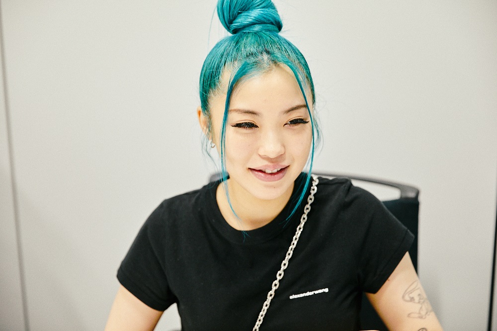 「お父さんもお母さんもダンサーで、スタジオでダンスを教えてたんですね。その中に混じって私も子供の頃からダンスを習っていて。スタジオにはDJブースやレコードもあって、ローリン・ヒルとかが流れてたのを覚えてますね。地元は沼津なんですけど、地元のクラブに親に肩車されながら行ったり(笑)。ダンサー仲間の友達の子供っていう感じで、周りも驚くこともなくて。ただ子供だったから「すごくうるさい場所」っていう感じだったし、ヒップホップにも興味はなくて……っていうか、ちっちゃい頃に「ヒップホップ最高!」とか思ってたら怖くないですか?(笑)。それよりもK-POPとかJ-POP、アニソンが好きでしたね。でも特定のジャンルが好きっていうよりは、「好きな曲」「苦手なタイプの音楽」みたいに、単純に好き嫌いで聴いてた感じですね。ヒップホップに興味を持ったのは中学校のとき。あんまり学校に行かなくなって、クラブで遊ぶようになってから、面白いなと思い始めたんですよね」