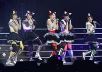 さすがの人気を誇ったももクロは、最新曲ながら7分を超える『Z女戦争』をセレクトする奇策で応酬。ずば抜けた歌唱力で他を圧倒した東京女子流は、こちらもあえてライブに強い選曲で観衆を釘付けにする。その後も、きらびやかなアッパーチューンをショートバージョンに変更して畳み掛けたSUPER☆GiRLSに、嗣永桃子の「許してにゃん♪」も繰り出しつつキャリアの違いを感じさせるパフォーマンスを見せつけたBuono!と、高いテンションは保たれたままイベントは終盤へ。