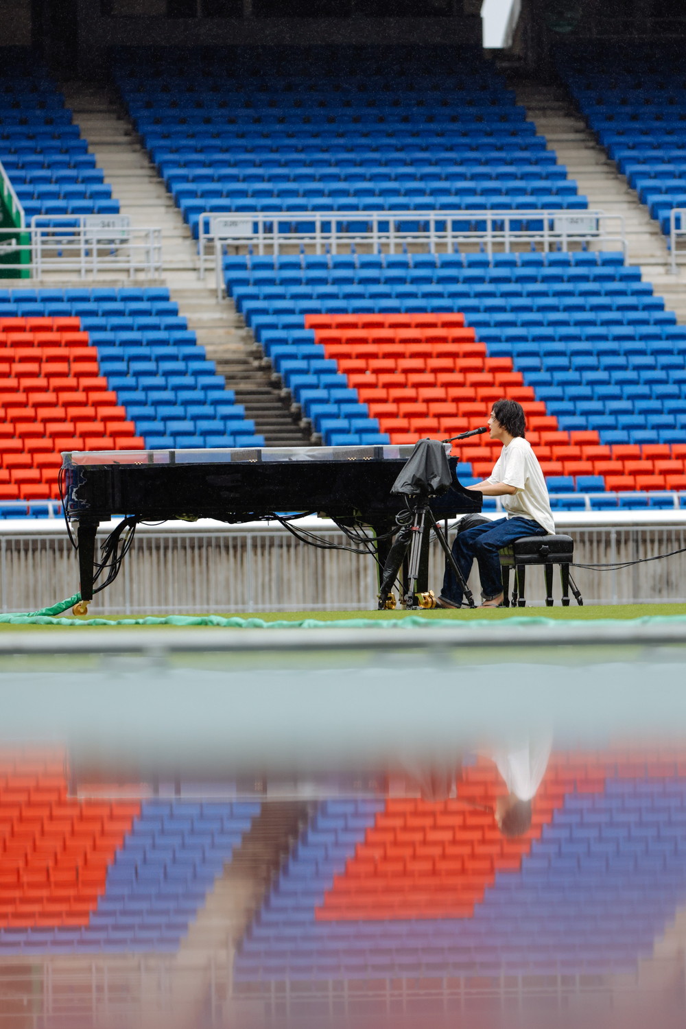 いろんな意味でフリーになれるように練られたこのライブは、フィールドにグランドピアノがぽつりと置かれただけのシンプルなステージだった。もともとYouTubeでピアノ弾き語りを投稿してきた彼にとっては、いつも通りのスタイルと言える。ゆったりした白いTシャツにジーンズ、そしてビーチサンダルと、キメすぎない服装もリラックスしたムードを表現していた。