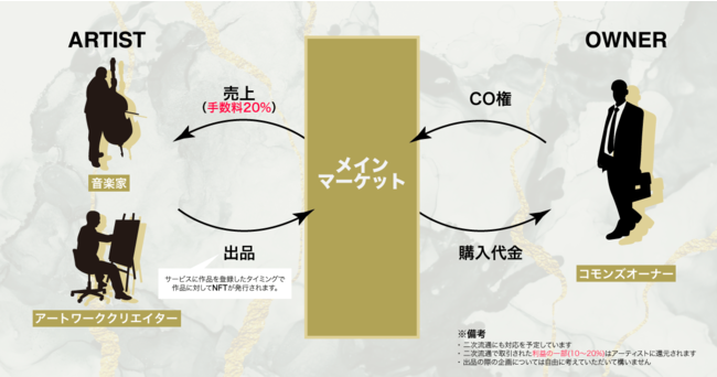 ブロックチェーンによる取引やデジタル通貨などのミドルレンジ(サービス間の利便性の向上)に強みを持つGincoとの協業で、投機性を抑制しながら、健全な資金調達をアーティストにもたらすことができると考えています。