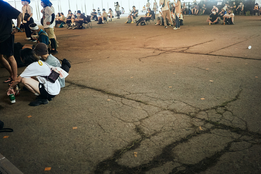 昨年は<WHITE STAGE>への出演が決定していたが、状況を鑑みて出演を辞退。そして今年は<GREEN STAGE>へとステージを変え、出演を果たした折坂悠太。「去年と今の状況のなにが違うのかと聞かれると、ここに来るまでにいろいろ考えたんですが、答えられません。“去年はやめた、今年はやる”そうやって試行錯誤するしか方法がわかりません」と、コロナ禍での在り方について苦悩を吐露。「フジロックがどんどん変化しながらこういうお祭りになったように、私も自分の営みを止めないでやってみようと思います。試行錯誤の場を私に与えてくれて、本当にありがとうございます」と述べ、未発表曲を披露した。「トーチ」のイントロでRCセクションの「わかってもらえるさ」を一節歌ったのは、彼なりの【FUJI ROCK】へ敬意の表し方だったのかもしれない。