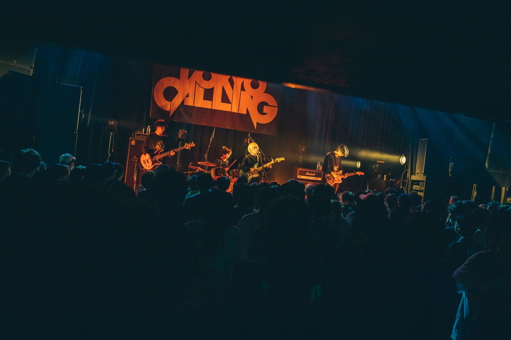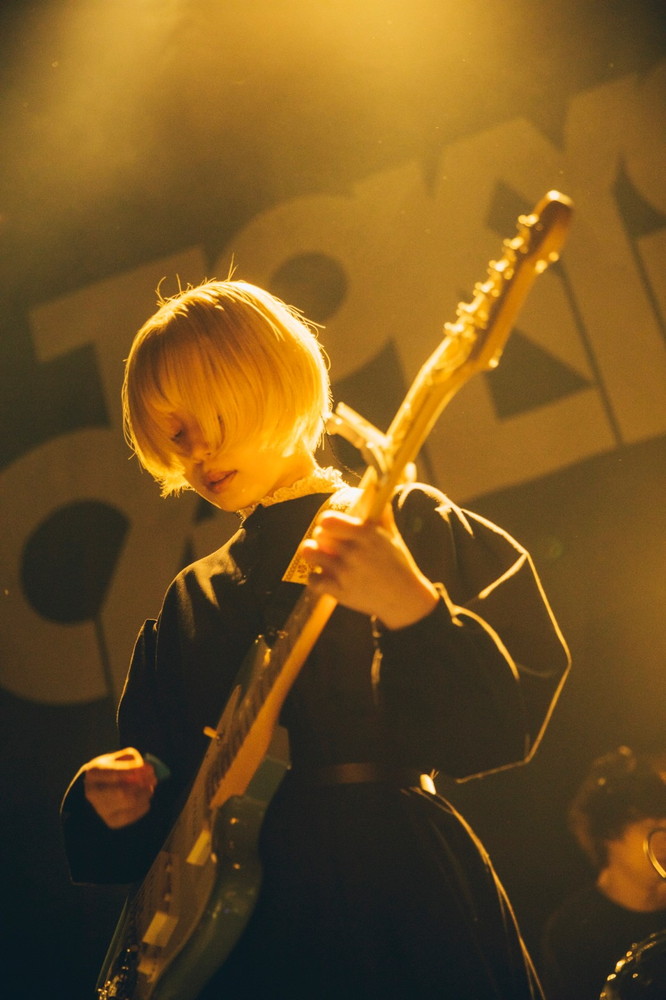 「TOKYO CALLING、よろしくお願いします!」と萌映(Vo/Gt)が挨拶して始まったのは、福岡で結成された4ピース・バンド、クレナズムのステージ。シューゲイザー由来の轟音が早速場内を埋め尽くし、分厚いバンド・サウンドの中で萌映が声を張る。1曲目は「白い記憶」。鮮烈なオープニングだ。対して2曲目の「杪夏」は疾走感溢れる曲調で、メロディ・ラインもかなりポップ。客席から手拍子が起き、拳も多数上がるなか「ひとり残らず睨みつけて」で畳みかける。MCでは、萌映が【TOKYO CALLING】に出演するのは3年ぶりだと明かし、「すごい、(観客が)いっぱいいる。胸が熱くなります」と喜びを噛み締める。