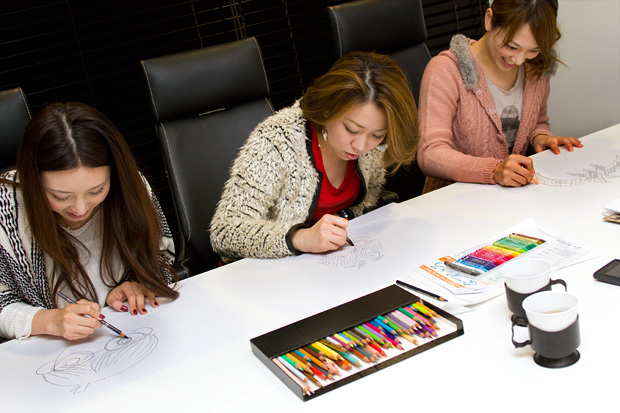 和気あいあいとした雰囲気の中、真剣に描いてくれた3人。一番 絵心を持ったメンバーは誰でしょう?