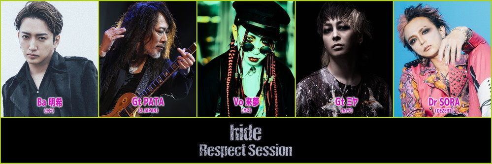 ――ではまず<hide Respect Session>の成り立ちから教えてください。メンバーは来夢(Vo./キズ)、PATA(Gt./X JAPAN)、ミヤ(Gt./ムック)、明希(Ba./シド)、SORA(Dr./DEZERT)となっています。SORAさん自身もhideさんへの憧れは大きいですよね。
