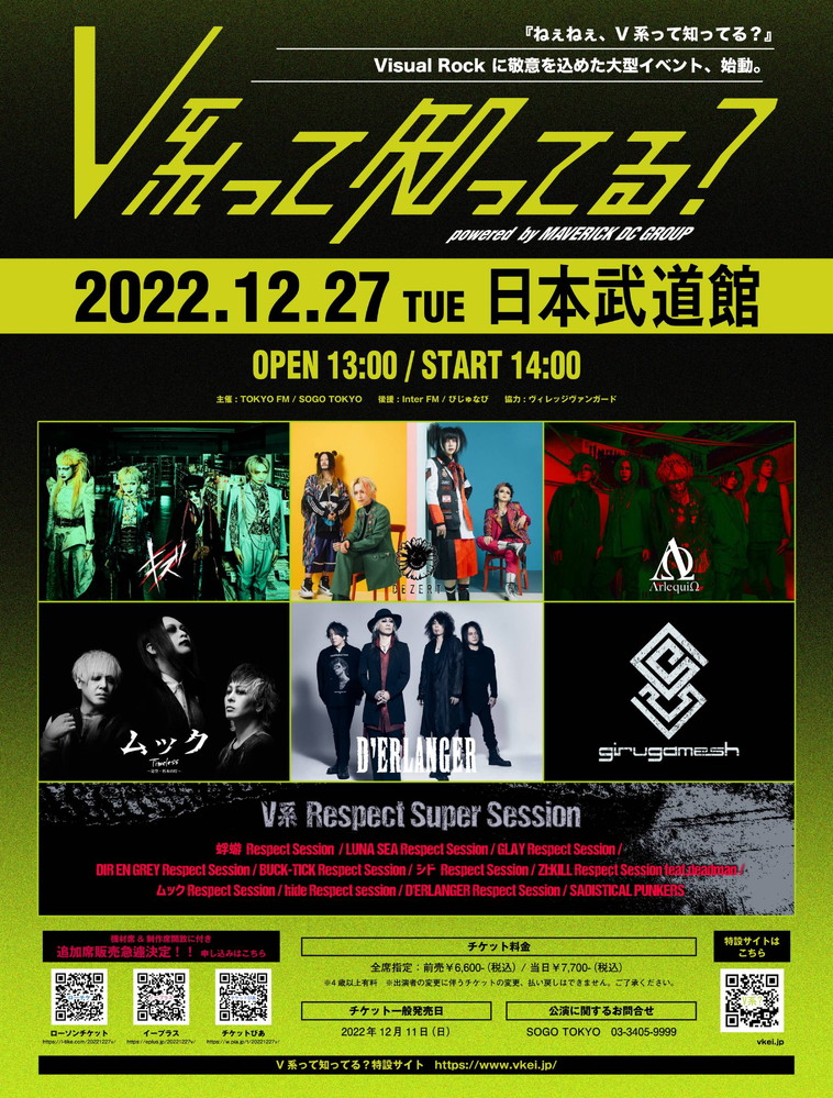 12月27日、東京・日本武道館にてライブイベント【V系って知ってる? powered by MAVERICK DC GROUP】が開催される。