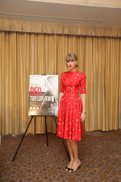 米ビルボード・アルバム・チャートにて最新作『RED』が3週連続1位を記録した若き歌姫テイラー・スウィフトが、プロモーションの為に、1年半ぶり5回目の来日を果たし、合同インタビューが行われた。まずは、テイラーによる「今日は、来てくれてありがとうございます。ニッポンダイスキ!日本へ戻って来られて、光栄です。ちなみに、私はテイラーです(笑)。」というキュートな挨拶でスタートした。