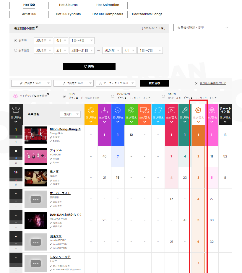 ビルボードジャパンが発表するチャートをデータごとに分析することができる<Chart Insight>が、2024年3月にリニューアルした。
