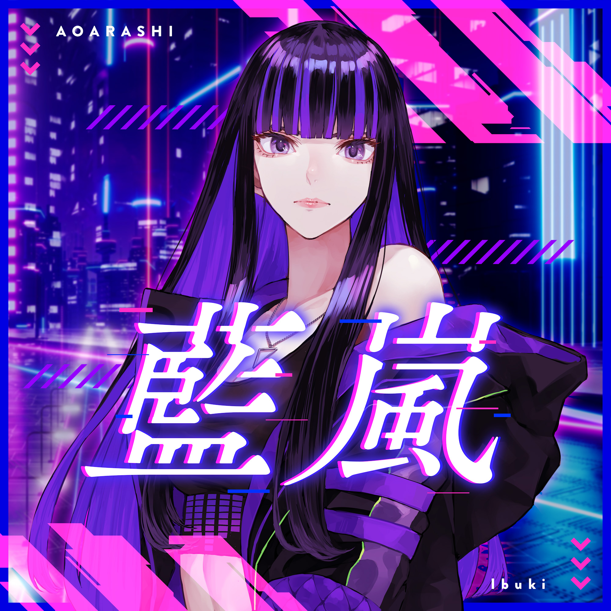 Ibukiの1stシングル「藍嵐」は、ボカロP・Misumiが作詞、作曲、編曲の全てを手がけた。イラストはVTuberを含めたキャラクター・デザインや書籍の挿画を幅広く手がけるイラストレーターのカオミンが担当。冒頭に紹介したIbukiのキャラクター・デザインもカオミンが制作した。Ibukiのバックグラウンドを匂わせるエモーショナルなリリック、EDM特有のビルドアップから過去の傷跡を乗り越えていく強さが光るドロップへの解放的な展開、挑発的なラップパート……最前線のグローバルトレンドを吸収したサウンドと芯の通ったクールな歌声は、様々な殻を破る強さを持っている。