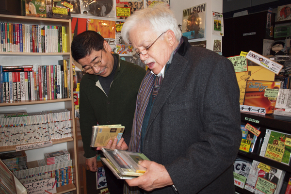 今回ヴァン・ダイク氏と一緒にお邪魔したのは、東京・武蔵小山駅前のCD&レコード店[PET SOUNDS RECORD/ペット・サウンズ・レコード店]。名前の通りビーチ・ボーイズ関連商品はもちろんのこと、珠玉のビンテージ・ポップスから知る人ぞ知る隠れた名盤、そして最新作まで、音楽をこよなく愛する店主の森 勉さん、森 陽馬さん親子による心のこもった独自のセレクトが魅力のお店。時間を忘れてじっくり店内を堪能するもよし、店主と音楽談義に花を咲かせるのもよし。そこにふらりと立ち寄れば、お気に入りの作品がきっと見つかる…32年間に渡り、地元の人々にはもちろん、多くの音楽ファンに愛され続けているお店と聞かされ、今回の訪問を楽しみにしていたというヴァン・ダイク氏。