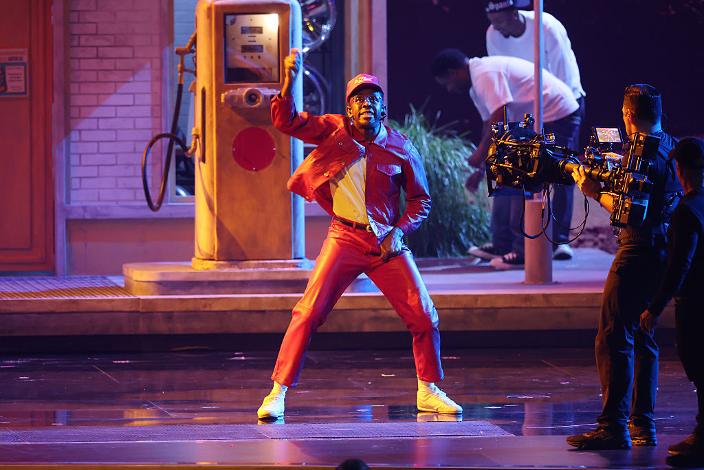 米ビルボードが今年のベストアクトに選んだのが、タイラー・ザ・クリエイターのパフォーマンス。『CHROMAKOPIA』のアートワークで見せるルックで行進するように登場したタイラーはダイナマイトを手に「Like Him」「Thought I Was Dead」をプレイ。途中、オスカー女優のレジーナ・キングに「もし過去の場所に引き戻されそうになったら、先に壊しなさい。そうしないと先にあなたが壊されてしまうから」と諭された別の彼は赤いスポーツカーに乗り込み、『CHROMAKOPIA』の自分に突進。『Don’t Tap the Glass』からの「Sugar On My Tongue」で前身にさよならした。そんな彼もダイナマイトで自らを危険にさらし、最後は階段を転がりながらぶっ倒れて終了。セットを派手にぶっ壊すのが好きな、なんとも彼らしい一幕だった。