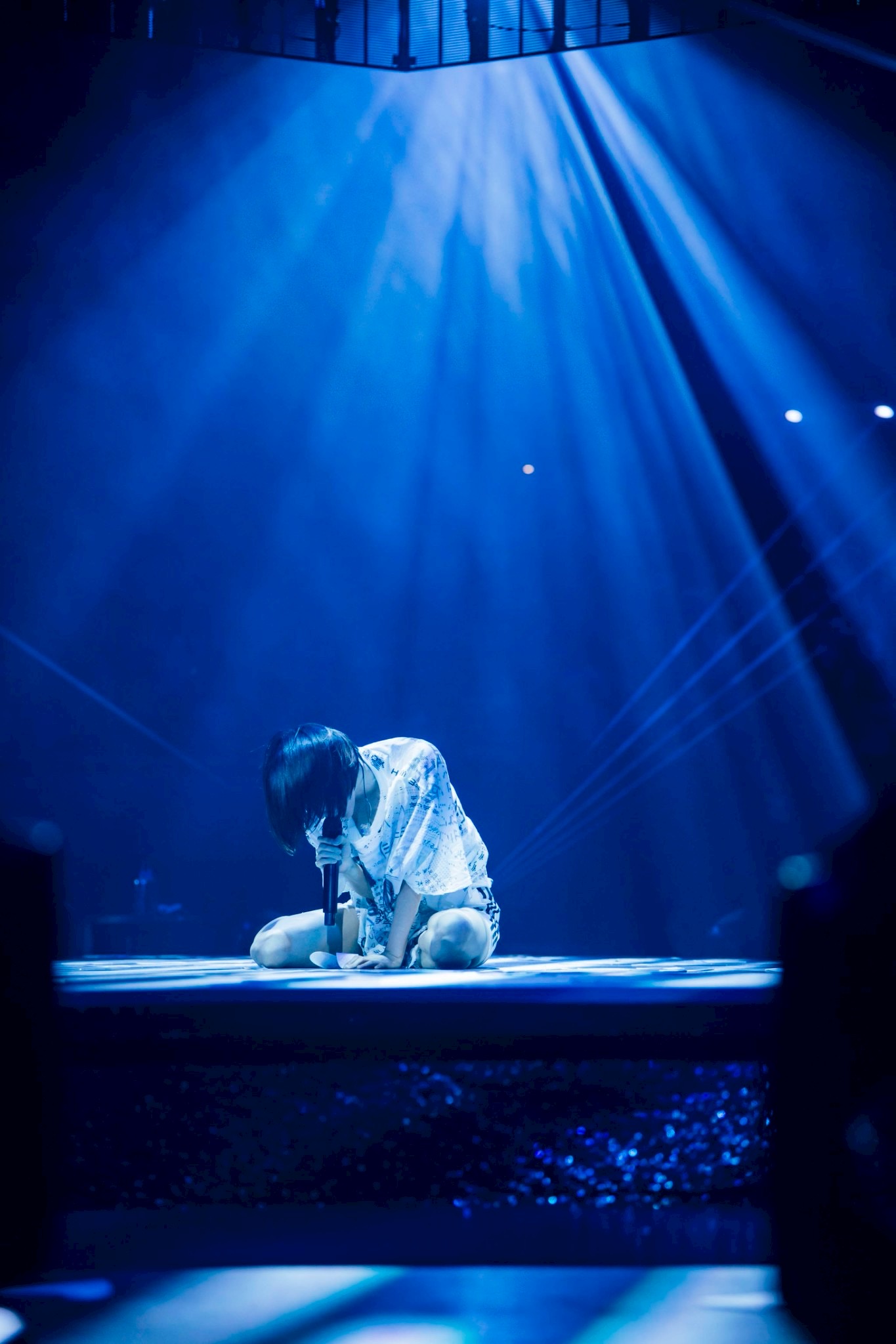 大きな骨になった羽を背負った派手で壮大な衣装を纏い、ハンドマイクでパフォーマンスしていたanoは、ライブが進むにつれて、次第に等身大で素の姿へとなっていく。裸足に白いワンピースでアコースティックギターを弾き語り、青いジャージでエレキギターをかき鳴らし、ビッグTシャツ1枚から、アンコールではパジャマ姿になった。楽曲と衣装に合わせて舞台や照明も変化していき、白いワンピース姿だった中盤にはセンターステージに“学校”を思わせる机と椅子が置かれていた。昨年にリリースされたばかりの「ハッピーラッキーチャッピー」はアニメ『タコピーの原罪』のオープンニングテーマだが、小学4年生のいじめと家庭環境がテーマとなっていた。インディーズ時代の「SWEETSIDE SUICIDE」や、最も忙しい時期に“音楽を作る”ことを希求し、急遽、作詞作曲した「YOU&愛Heaven」を含め、いじめがきっかけで家に引きこもっていた学生時代の自分や、立ち止まらざるを得なくなった経験と向き合い直す時間にもなっていたようだ。