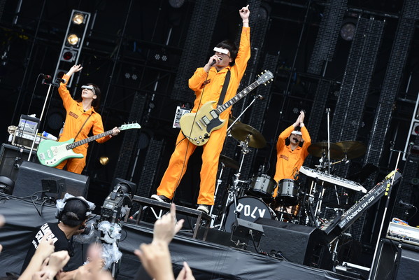 8月4日のトップバッターはKREVA。堂々としたパフォーマンスで大合唱を巻き起こす幕開け。続くDragon Ashもオーディエンスを飛び跳ねさせ、大合唱に導き、The Birthdayは全身全霊のロックンロールをかき鳴らし、「海みたい?どこ?持って来い!」と語り、ロックスターが憧れであることを改めて教えてくれた。そして、3日間である意味、どのバンドよりもパンクだったのはグループ魂だ。暴動こと宮藤官九郎が脚本を手掛ける朝の連ドラ『あまちゃん』のオープニングテーマ曲をSEに港カヲルが海女さんのコスチュームで登場し、おなじみの下ネタ全開でスタート。爆笑をかっさらいながらバキバキのロックチューンで踊らせてくれた。