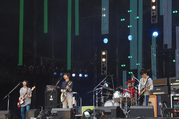 2日目となる8月3日のGRASS STAGEはPOLYSICSの「トーーーーイス!」のシャウトでスタート。制御不能のテンションは午前中から絶好調でオーディエンスを熱狂に導く。Base Ball Bear、NICO Touches the Wallsらが、晴天の空に爽やかにロックを鳴らせば、結成9周年の9mm Parabellum Bulletが轟音と超絶テクニックの応酬で燃やし尽くす。ASIAN KUNG-FU GENERATIONも躍動感たっぷりのロックナンバーを続々と投下する。そして、2日目のGRASS STAGEのトリを飾るBUMP OF CHICKENは5年ぶりの出演とあってフィールドは超満員。ベストアルバムをリリースしたこともあり、そこからヒット曲を惜しみなく披露しつつ、映画『ガッチャマン』主題歌として話題を集めている新曲「虹を待つ人」を初演奏。ラストは「天体観測」で最高のクライマックスを描き切った。