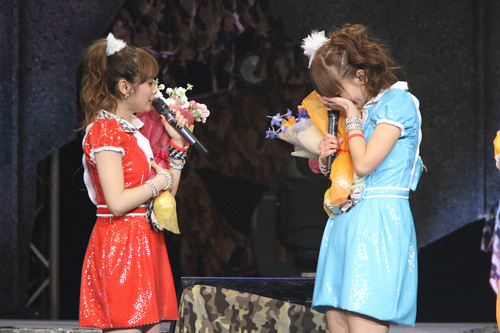 亀井絵里、道重さゆみ、田中れいなの6期メンバー組によるMCでは、亀井が道重の家でパンツ一丁でうろうろしていた話など、ブログに載せられないレベルの奇行を次々と暴露。また、3人が『大きい瞳』を披露するとファンはメンバーの名前を絶叫しながら飛び跳ね、互いの手を重ね合う場面では涙を流す人もいました。そんな後輩の感動的なステージを受け、新垣里沙は『夕暮れ作戦会議』(安倍なつみカバー)で「いい仲間ね ありがとう」と、高橋は『スッピンと涙。』(後藤真希カバー)で「涙 止まらないみたい」と、それぞれ想いを溢れさせながら歌い上げていきます。