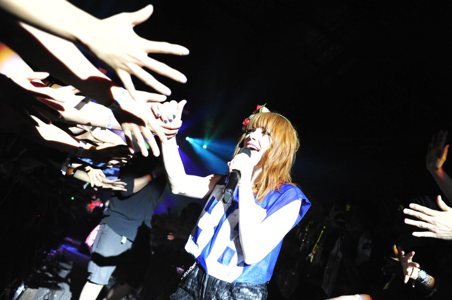 今、最も輝きを放つ歌姫を一目見ようと集まった観客で、入場制限ギリギリでは?と思わせるほどにまで膨れ上がった超満員のMOUNTAIN STAGE。ようやく会場に入れた時には、黄色い歓声が会場中に飛び交う中、もはや日本でもお馴染みの、エレクトロ・ポップ・サウンドの先駆け「グッド・タイム」で会場は超巨大ダンスホールと化していた。何とか潜り込んだ後方からの光景は、会場の軋む音が聞こえそうなほどの、オーディエンスが黒く大きな塊と化して上下左右に揺れ動く圧倒的景色が広がっていた。ライブ中盤には、色鮮やかな紙吹雪がド派手に舞ったかと思えば、彼女は観客席まで降り、前方のオーディエンスと握手やハイタッチを決め、会場をさらに興奮の渦に巻き込んでしまう。ラストには数名の観客をステージ上に呼び込み、自身の大ヒットナンバー「コール・ミー・メイビー」を堂々と歌いあげ、その溢れんばかりのカリスマ性を存分に魅せつけてくれた。