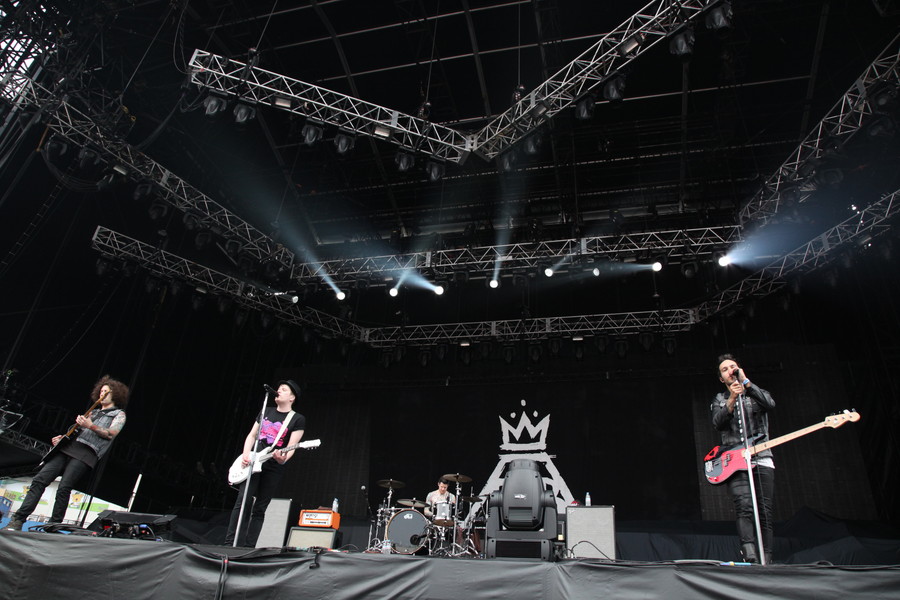お決まりの「Thriller」からライブは幕開け、ベーシストのピート・ウェンツが「日本は第2の故郷だ!」と叫ぶと、「This Ain't a Scene, It's an Arms Race」のイントロがスタートし、コーラス部分ではピートとギタリストのジョー・トローマンがステージをエネルギッシュに駆け回る。最新作からは「The Phoenix」「僕の歌は知っている」、そして日本で初めて「Alone Together」を披露。観客とのコミュニケーションも精力的で、コール&レスポンス、手拍子、タオルを回すように煽るなどはもちろん、パトリックが手でハートを作るなど、いかに彼らが日本のオーディエンスのツボを知り尽くしているかが伺える。そしてフォール・アウト・ボーイの人気を不動のものとした大ヒット・ナンバー「Dance, Dance」「Thnks fr th Mmrs 」と、もはやベスト・アルバムをそのまま演奏してくれているのではないかと思うほど、ファンにとっては最高のセットリストでライブが進行していく。そしてラストは「Saturday」でビシッと締め、彼らの魅力がギュッと凝縮された約1時間のステージが終了。4月に行われたクラブ・ギグも素晴らしかったが、10年以上のキャリアも積んできたこともあって、若き“ロックンロール・ヒーロー”達による観るものすべてを惹きつける圧巻のパフォーマンスは、やはり大きなステージが似合うんだと改めて確認させられた。