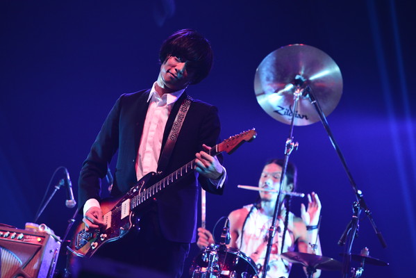 彼ら3人の作り出す音世界は何故あんなにも心地良いのだろうか。サウンド自体は3ピースならではで実にシンプル。しかし、彼らの一寸の狂いもない完璧なまでのアンサンブルで、怖ろしいほどに気持ちの良い空間を演出し、鮮烈の各ソロパートをより一層引き立てて輝かせる。そして、無駄のない軽快なステージ運びでアクトをびゅんびゅんと加速させ、そこに、程良いタイミングで折り込んでくる渡邊(Vo.Gt)の変則的で陽気なMCが会場を笑いで包みこむ。チャキチャキとキレ良く響くギター・リフ、爽快なコーラスワーク、正確無比に刻まれるベース音にドラム・ビート、何をとっても全てが絶妙。彼らの積み重ねてきたキャリア、そこから培った確かな演奏力が十二分に溢れだしていた素晴らしいアクトであった。