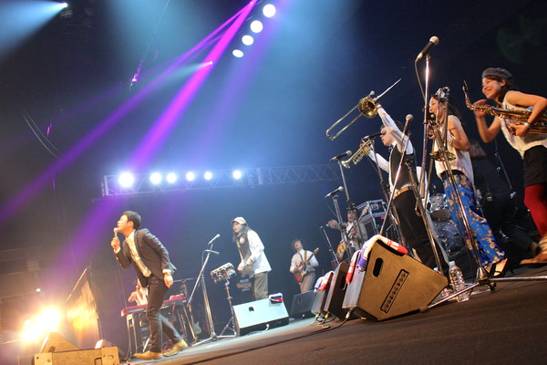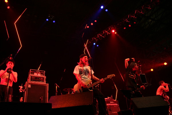 開演直前に到着したGALAXY STAGEの場外には予想を遥かに上回る長蛇の列。そこに、一度聴いたら忘れられなくなるほどの衝撃的なイントロでスタートする「Endless Sorrow」が鳴り響き、会場に飛び込んだ時にはすでにスカ・ダンスの嵐。今回のステージでは、自らが日ごろ主戦場としている “ライブハウス”に強いこだわりをみせた彼らは「ようこそライブハウスへ!」と言い放ち、会場に詰めかけたフェスならではである多種多様の音楽好きたちを、ジャンルを超えた、遊び心溢れる強烈なスカコアサウンドで激しく揺らし続けた。「またライブハウスで会おう!!」と、言葉を残した彼らは、GALAXY STAGEという巨大なハコで2013年のラスト・ライブを締めくくった。