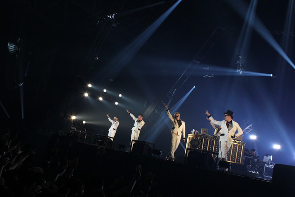 2日目のEARTH STAGEのトリを飾るのはRIP SLYMEの5人。広いステージの中央に鎮座する金色に輝く卓にDJ FUMIYAが現れ開演。PES、RYO-Z、SU、ILMARIが続々と姿を見せて最新アルバムのタイトルを冠した「GOLDEN TIME」へ。先程までこのステージで熱演していたザ・クロマニョンズのストレートなノリだけ残して広大なフロアは飛ぶ、揺れるのディスコ状態に。そして、今年の人気ドラマ『リーガルハイ』の主題歌に起用された「SLY」を披露したかと思えば、前曲と同じく堺雅人主演のドラマ主題歌「Scar」に。「堺雅人トリビュート!」のシャウトにオーディエンスも熱狂。“堺雅人の人気に乗っかりました!”という選曲が遊び心でしかない所が彼ららしくで楽しい。『GOLDEN TIME』からの収録曲できっちり踊らせてから、Sunset to Sunriseで、2014年の日が昇ると「黄昏サラウンド」を配置してくるあたりも流石。後半も「FUNKASTIC」「熱帯夜」とキラーチューンで畳み掛けてクライマックスへ突入。「JOINT」でタオル大回転で締めくくり、アンコールでは「みんなでひとつになってくれますかー?」と「One」でステージの5人は全力のオーディエンスとひとつに。遊び心とニクいテクニックに魅了された一夜となった。