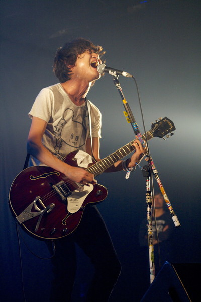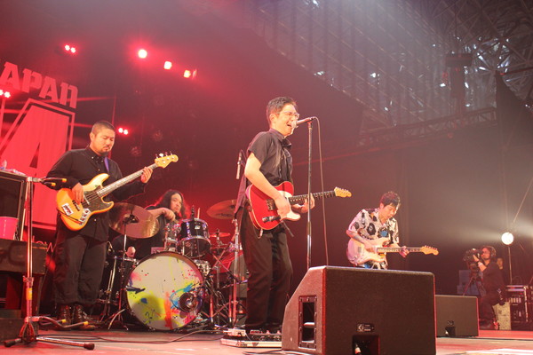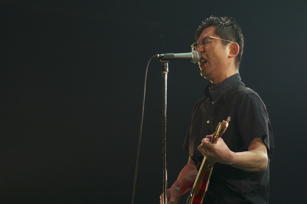 3日目のトップバッターは今年の流行語大賞「じぇじぇじぇ!!!!」を叫ぶオーディエンスに呼ばれるようにグループ魂が登場。これまで何度も本イベントに出演してきた彼らだが、この日ほどウェルカムな空気はあっただろうか?一足先にステージに現れた港カヲルは「こんばんは、“夜の進撃の巨人”・港カヲルです!」と自己紹介すると、テキストにするのは難しい変態MCで会場を沸かせる。異様な空気をどうにかしようと、メンバーがステージに姿を見せ演奏スタート。フロアは待ってましたと手拍子の嵐が巻き起こり、ちゃんと(?)ロックフェスらしい雰囲気に。今夏の【ROCK IN JAPAN FESTIVAL】では、ある意味一番ロックで、パンクだった彼らのパフォーマンス。この日も絶好調で、キワドい時事ネタをおりまぜながら爆笑ロックを叩き付ける。「君にジュースを買ってあげる?」の”ペニスジャパン!ペニスジャパン!!”のコール・アンド・レスポンスに口角は上がりっぱなし。