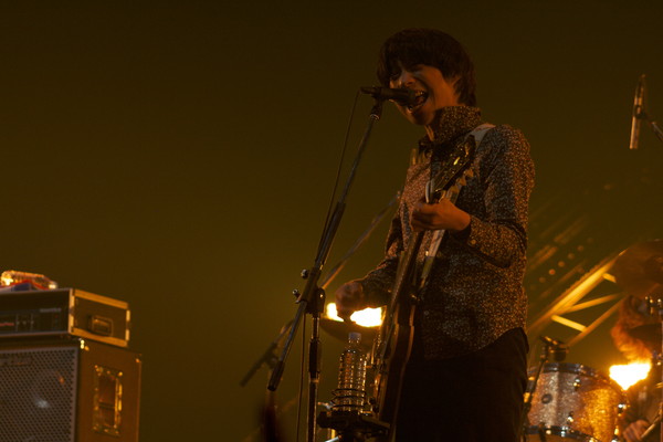 今年CMタイアップ曲で一気に知名度を上げ、リリースしたアルバム『吹き零れる程のI、哀、愛』もヒットを飛ばし一躍人気バンドにのし上がってきたクリープハイプ。昨年のCOSMO STAGEから今年は最大動員数のEARTH STAGEに登場と、その人気は衰え知らず。開演前にサラリと登場し、サウンドチェックながらしっかり本気の演奏は大勢のファンを喜ばせた。開演時間、尾崎世界観が「行ける?」とボソリつぶやくと、オーディエンスが大歓声で応え、「イノチミジカシコイセヨオトメ」でステージはスタート。疾走感あるロックサウンドに尾崎のハイトーンヴォーカルが乗っかり、フロアを揺らす。オーディエンスもバンドのプレイと同期するように熱気は沸点に達する。「去年は年連続同じとこ(COSMO STAGE)で“なんか腹立つな”と思って(笑)でも、今年は一番デカいとこです。みんながここまで連れてきてくれました。ありがとうございます!」と語り、恩返しとばかりに人気曲を立て続けに披露し、“デカいとこ”を思い切りアゲきって終了。この人気っぷりを見たら、来年はカウントダウン・アクトも期待しちゃう。