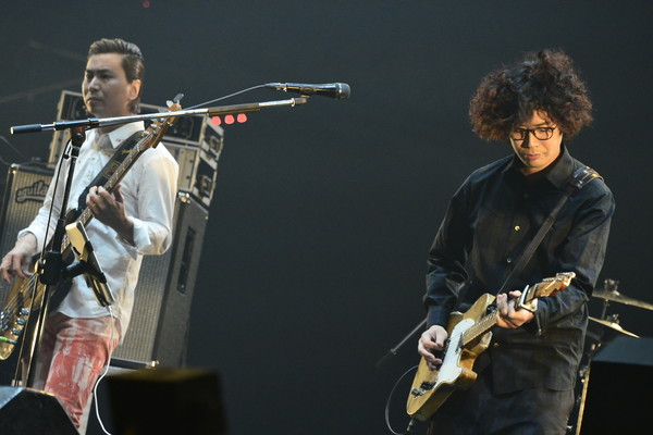 今年も年末恒例の【COUNTDOWN JAPAN 13/14】にZAZEN BOYSが現れた。当然サウンドチェックは本人たちが登場し、入念に行われる(もちろん呑みながら)。開演時間になると「幕張!時には女とマグワリ!」と、おなじみとなった口上でスタート。「我々マキシマム・アンド・ザ・ホルマリン・ボーイズでございます!」と自己紹介し「Honnoji」へ突入。轟音とブレイクの応酬にオーディンスは大歓声で応える。曲間での“ベーン、ベェーン”と鳴るチューニング音に向井秀徳のライブを聴きにきた感が高まる。年々切れ味を増す「Usodarake」と、年々湿度を増す「感覚的にNG」を続けて披露。年輪を重ねるように積み重なった鍛錬が発揮され、観客を圧倒し、酔わせる。「Himitsu Girl's Top Secret」ではメンバーはもちろん、オーディエンスも鳩のように顎を突き出してリズムをとっている。その様子にバンドと観客が変態的なグルーヴで繋がっていることを確認し、ニヤけてしまう。超満員となったCOSMO STAGEでの凄まじいパフォーマンスは「Riff Man」で終了。