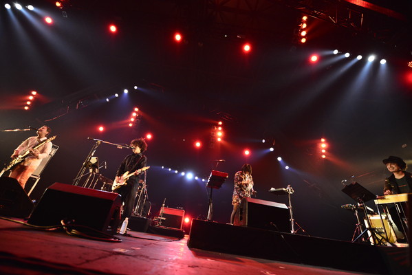 彼らを迎え入れるためのクラップがGALAXY STAGEに響き渡る。そして、そのクラップは登場と同時に熱狂に変わり、真っ赤な無数のレーザーが会場に飛び交う。ロック・テイスト全開の「Boohoo」、ダンサブルなハードロック・チューンの新曲など、攻撃的なナンバーでのスタートにオーディエンスは度肝を抜かれた。「ついこの間シングルを出したんですけど、次はその曲をやりたいと思います。」と内澤は、4年前に既に完成していたがずっと封印していたという「Missing」を披露。内澤の透き通るように繊細な歌声に乗せて、目を避けたくなるほど真っ直ぐなリリックがダイレクトに心に突き刺さる極上のバラード・ロックで全オーディエンスの涙腺を刺激する。そして、ドラマ主題歌として多くの人々の心を揺さぶった大ヒットナンバー「Voice」を投下し、感動的なラストを演出してみせた。