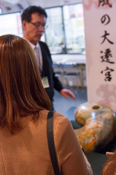 空コンではもちろん参加者たちがそれぞれに世界で一つだけの勾玉を作っていくが、今回は曽根も初挑戦。独特のキャラと語り口で楽しませてくれる支配人 大野和人氏の指導の下、制限時間ギリギリまで粘るほどのこだわりを見せながら勾玉を磨き上げていく。
